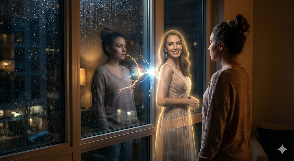 - 現実を直視する: 直後に、「鏡に映った現在のだらしない自分」や「邪魔になる障害(お菓子)」を冷徹に見つめます。