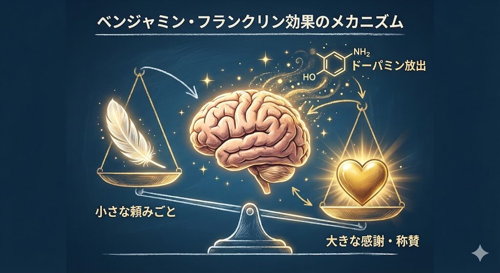 「お金貸して」「保証人になって」は論外です(笑)。相手が「いいよ」と即答できる、コストがほぼゼロの小さなお願い(ペンを借りる、道を尋ねる)から始めるのが鉄則です。