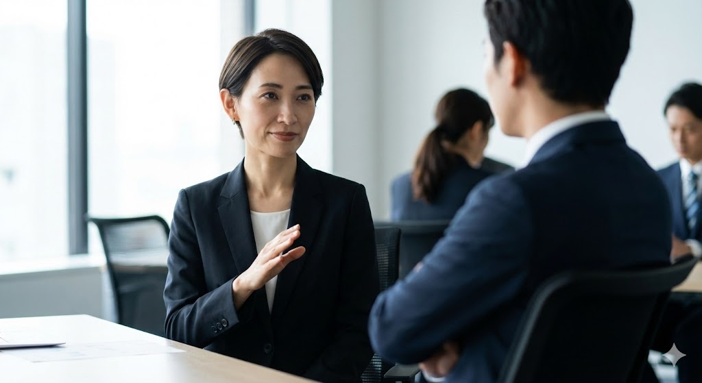 - 移行(1秒): 視線を外し、息継ぎせずに「で、本題に戻りますが」と接続詞で強制的に次へ行く。