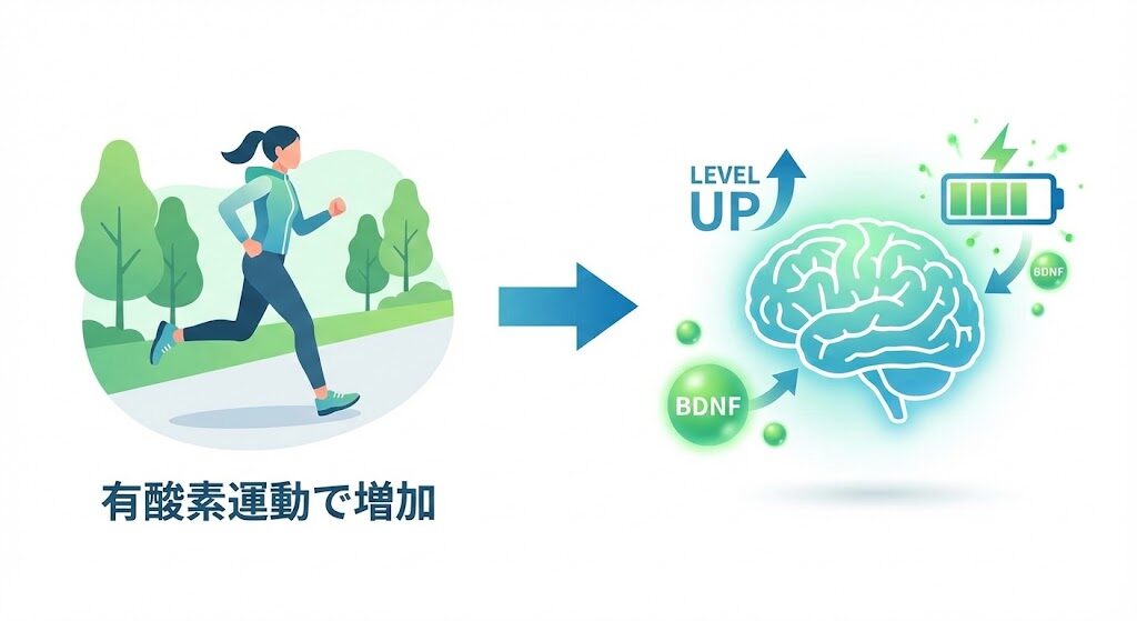 どうすればBDNFを増やせるのでしょうか? 最もエビデンスレベルが高い方法は、サプリメントではなく「有酸素運動」です。