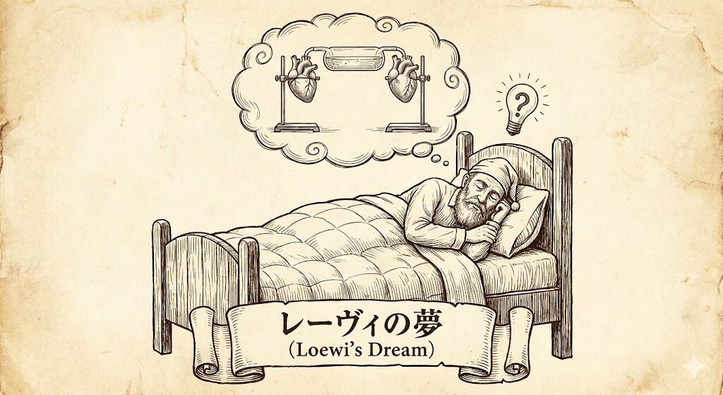 アセチルコリンの発見には有名な逸話があります。 生理学者オットー・レーヴィは、ある夜、「カエルの心臓を使った実験方法」を夢で見て飛び起き、その通りに実験を行いました。